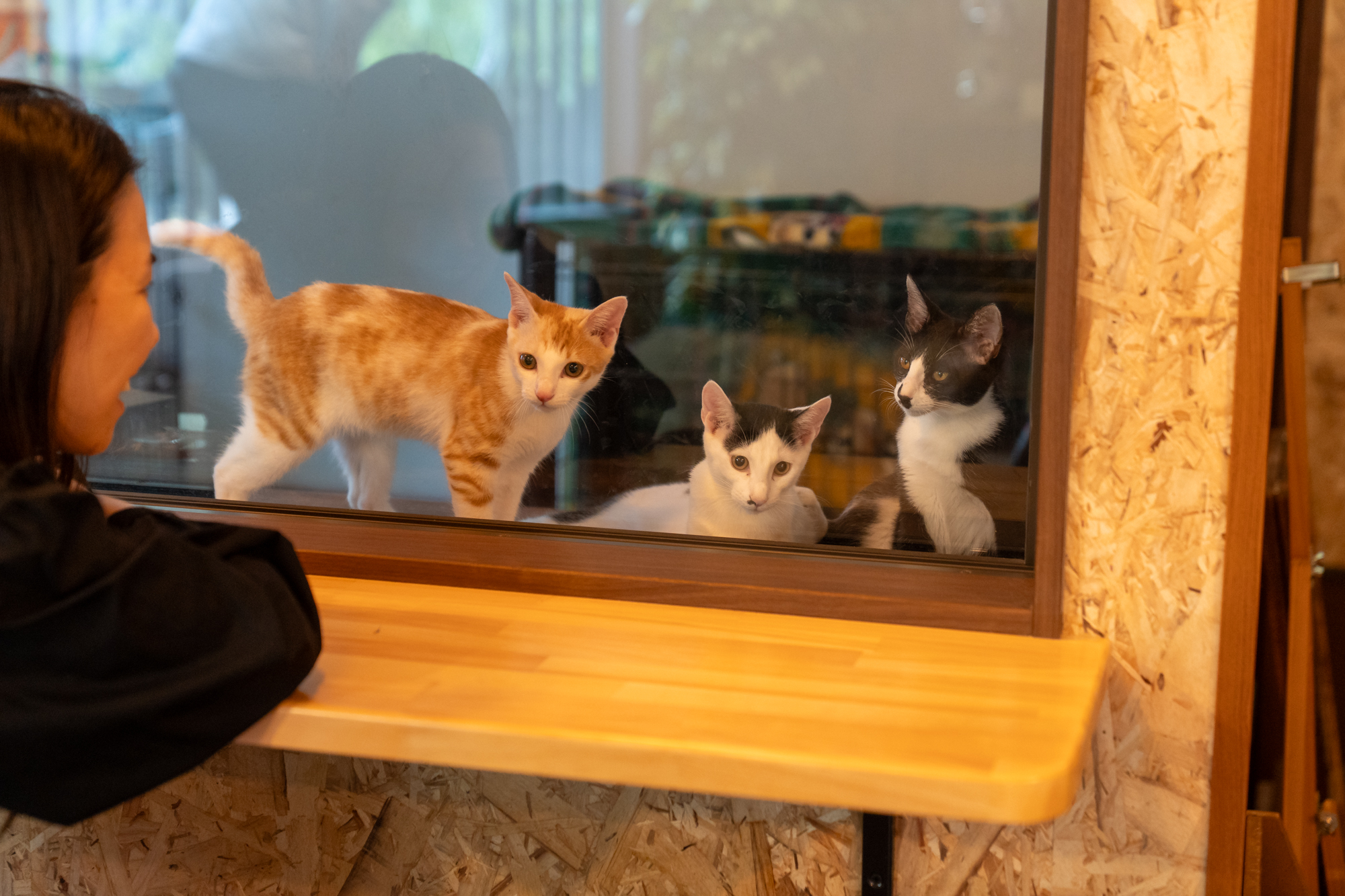 02一般のお客様と猫の直接のふれあいはできません。窓越しにご覧ください。